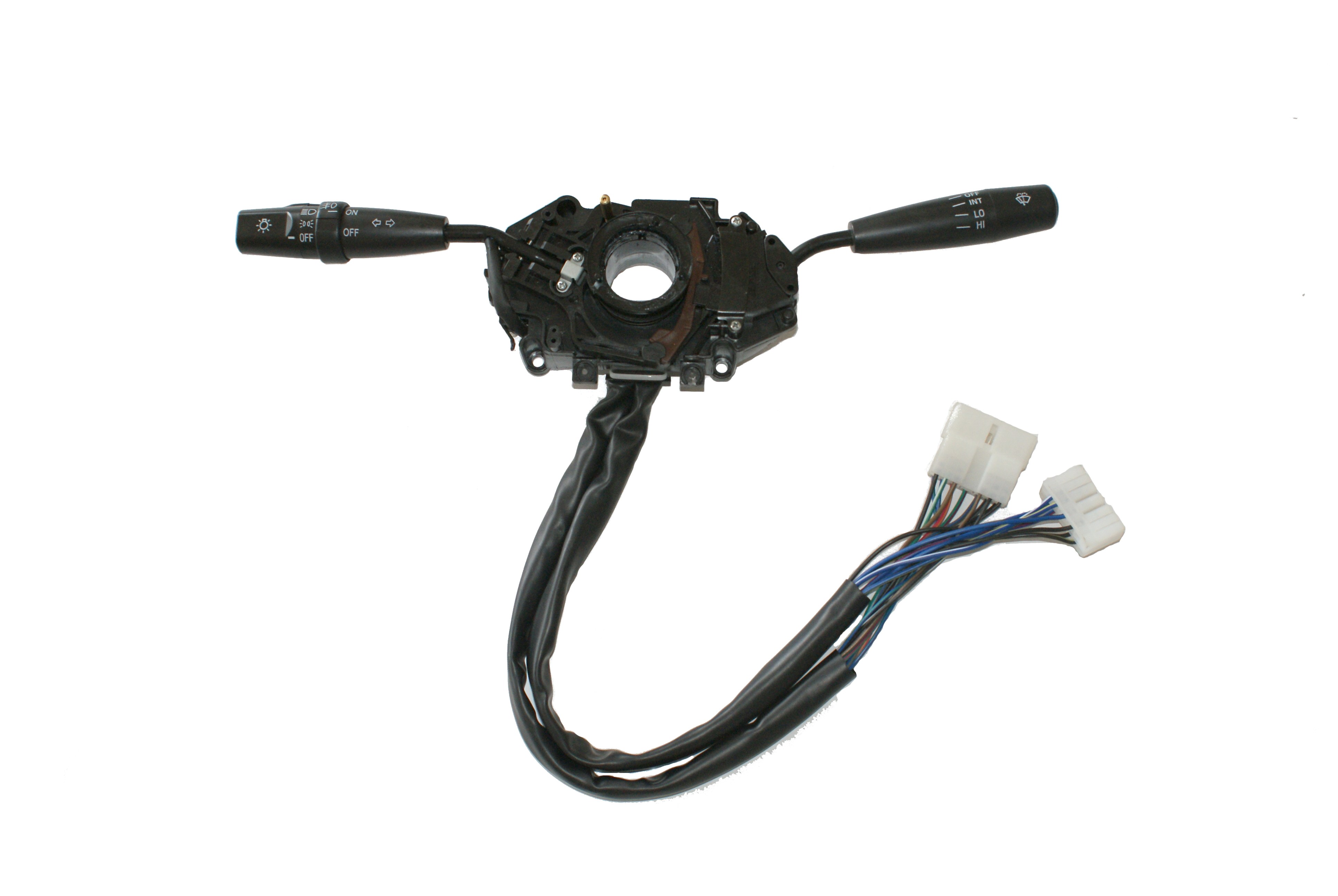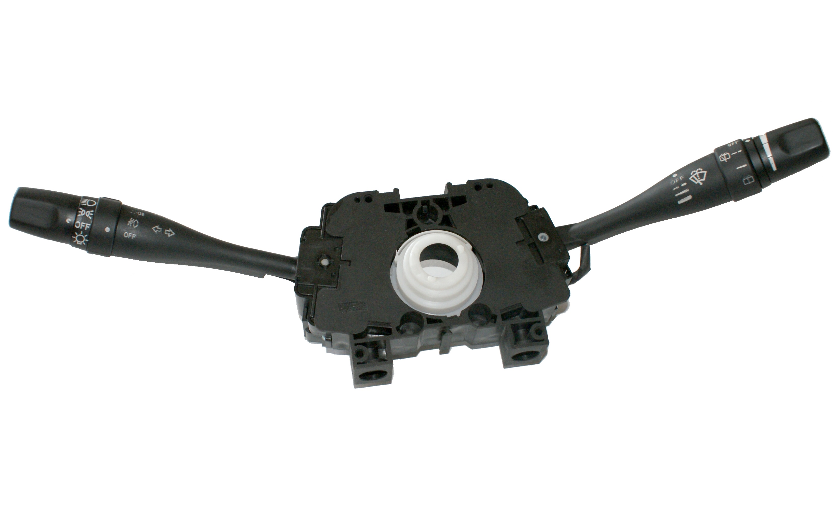 汽車組合開(kāi)關(guān)一個(gè)操作手柄控制雨刮和洗滌器開(kāi)關(guān),另一個(gè)操作手柄控制轉(zhuǎn)向燈、車燈和變光開(kāi)關(guān),另外一些汽車組合開(kāi)關(guān)還裝有喇叭開(kāi)關(guān)和多個(gè)備用開(kāi)關(guān),可以控制汽車上多種電器的通斷。